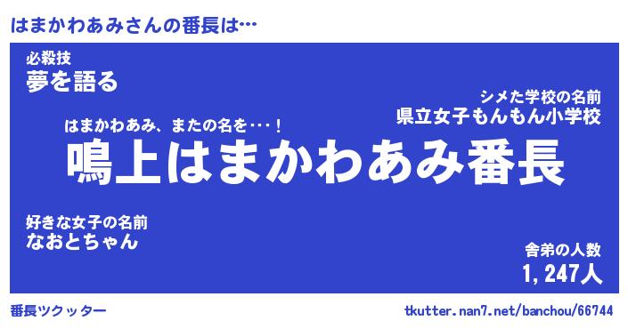 | 肩書あだ名 | 『はまかわあみCEO』『はまかわあみ班長』 |