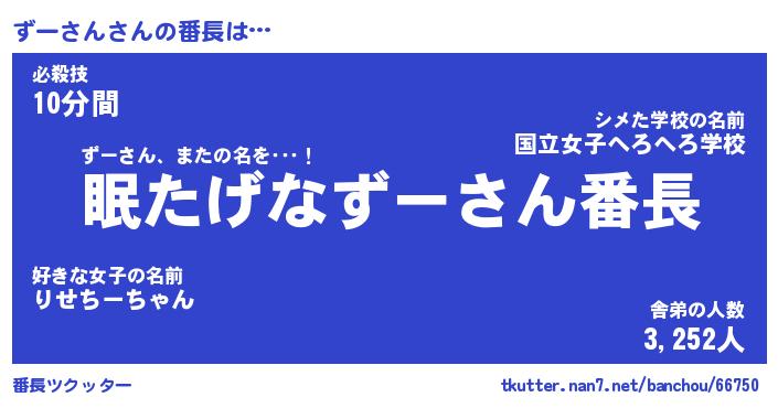 | ファンタジー風あだ名 | 『ズーフェル』『エターナルズーサンー』 |