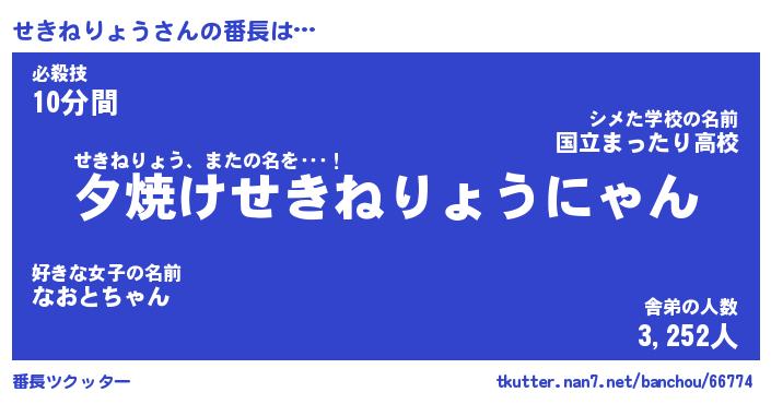 | 意味不明あだ名 | 『ペロリンせきねりょう』 |