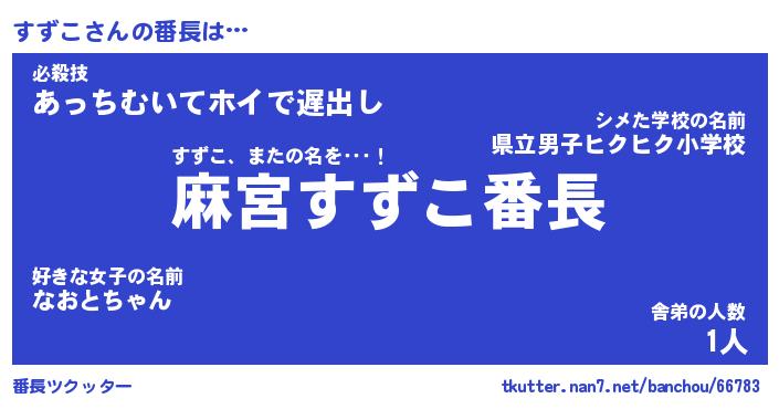 | 肩書あだ名 | 『すずこ御曹司』『すずこ国家主席』 |