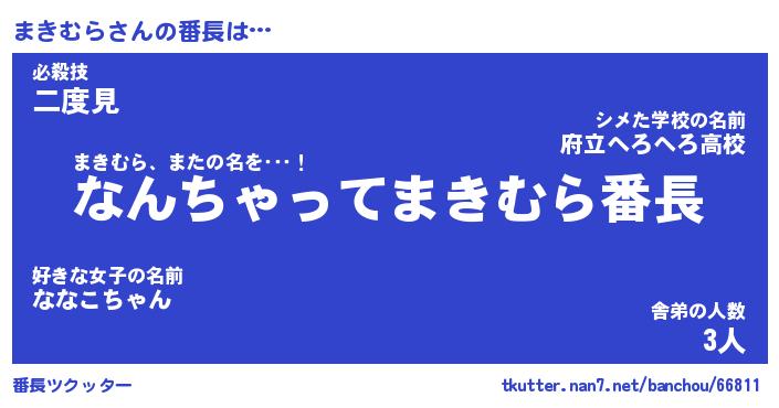 | 伝説のあだ名 | 『伝説のスナイパーまきむら』 |
