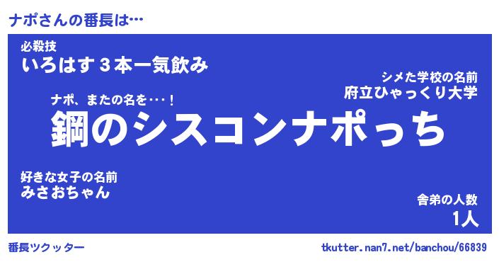 | ヘコむあだ名 | 『ナポにゅー』『なまこ酢』 |