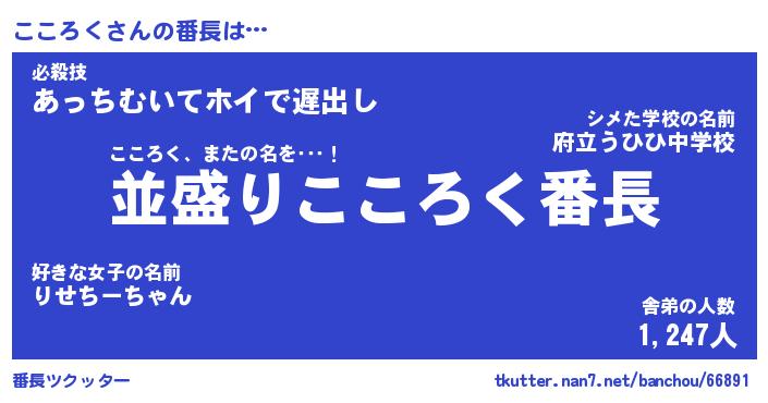 | 意味不明あだ名 | 『ペロリンこころく』『永久保存こころく』 |