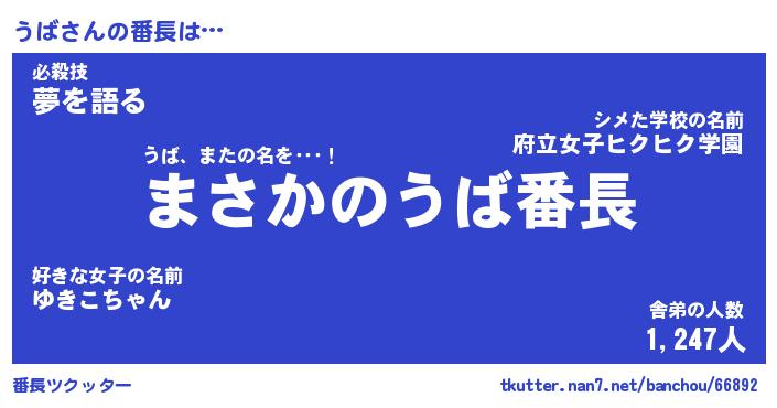 | ヒーロー風カッコイイあだ名 | 『スーパーウバ』『ウルトラうばマン』 |