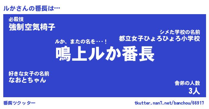 | 2回繰り返すあだ名 | 『ルかルか』『ルルかか』『いらいら』 |