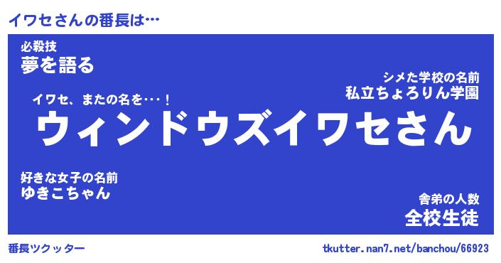 | 男性向けラノベタイトル風あだ名 | 『イワセの憂鬱』 |