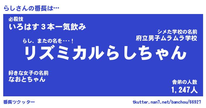 | 意味不明あだ名 | 『ペロリンらし』『らしフォーエバー』 |