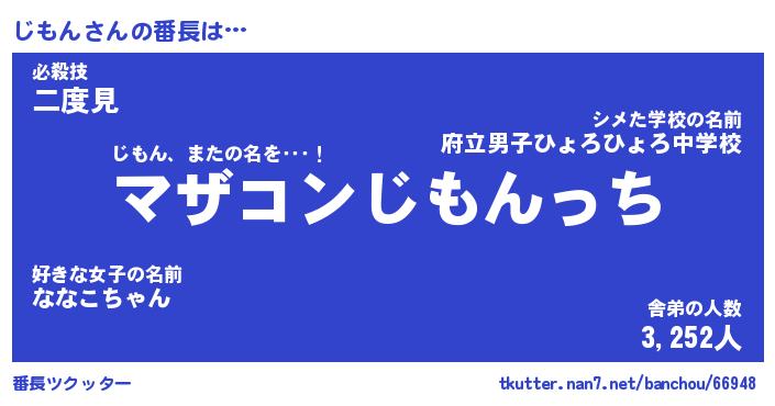 | 肩書あだ名 | 『じもん店長』『じもん総理大臣』 |