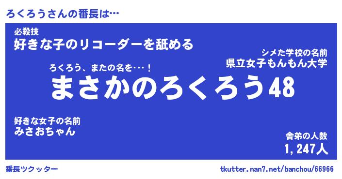 | 肩書あだ名 | 『ろくろう社長』『ろくろう総理大臣』 |
