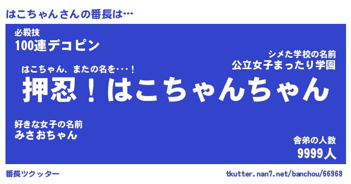 | ヒーロー風カッコイイあだ名 | 『スーパーハコチャン』『幻影騎士ハコ』 |