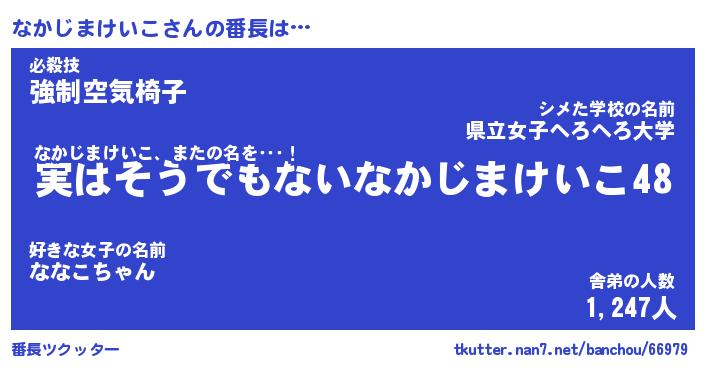 | ヒーロー風カッコイイあだ名 | 『スーパーナカジマケイコ』 |