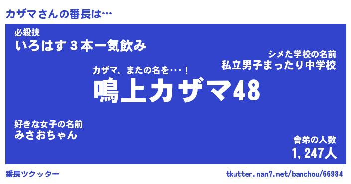 | ヘコむあだ名 | 『カザにゅー』『なまこ酢』『カザを』 |