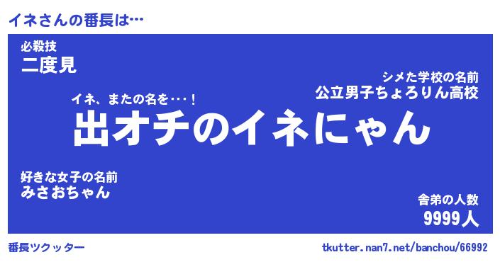 | ファンタジー風あだ名 | 『イネフェル』『エターナルイネー』 |