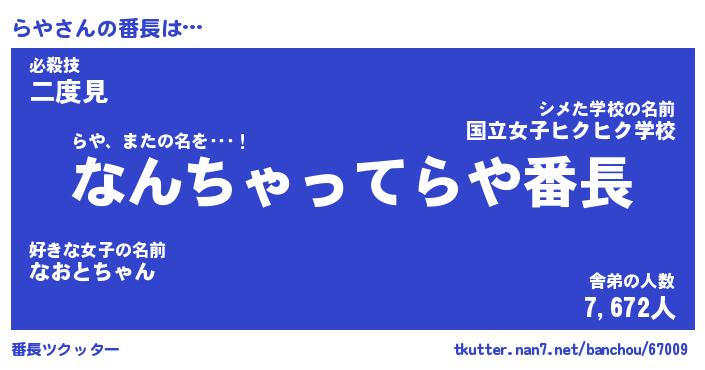 | 意味不明あだ名 | 『ペロリンらや』『らやフォーエバー』 |
