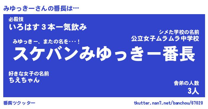 | 意味不明あだ名 | 『ペロリンみゆっきー』 |