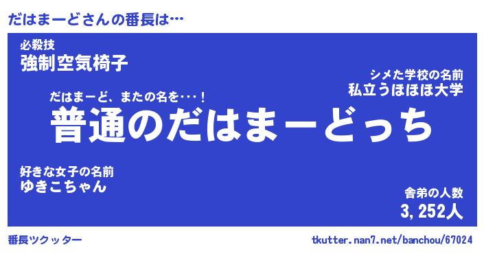 | 肩書あだ名 | 『だはまーど御曹司』『だはまーど塾長』 |