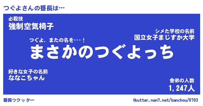 | ピコ太郎風あだ名 | 『ツコ八郎』『ピツ六郎』『ツグ太郎』 |