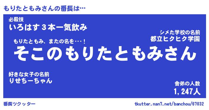| ヒーロー風カッコイイあだ名 | 『スーパーモリタトモミ』『銀牙騎士モリ』 |