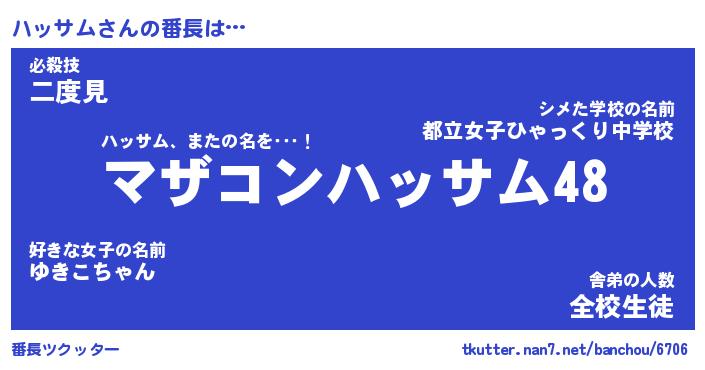 | 意味不明あだ名 | 『ペロリンハッサム』『永久保存ハッサム』 |