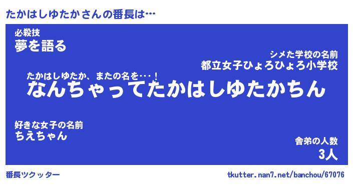 | 肩書あだ名 | 『たかはしゆたか店長』 |