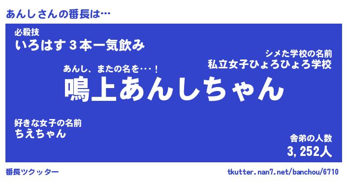 | 意味不明あだ名 | 『ペロリンあんし』『あんしフォーエバー』 |