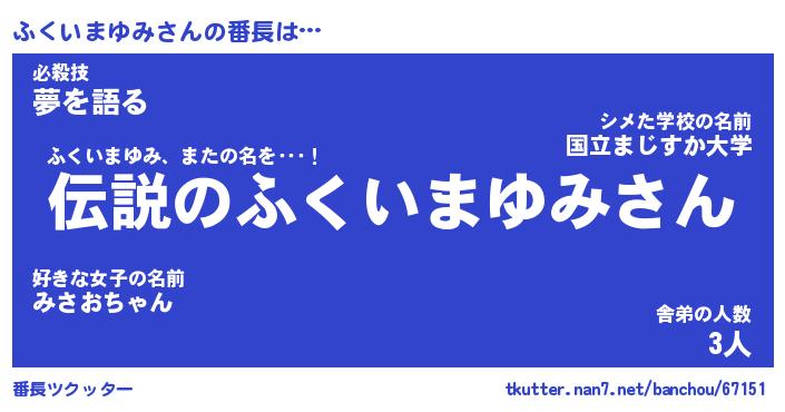 | 女子向けラノベタイトル風あだ名 | 『(仮)ふくいまゆみのやんごとなき事情』 |