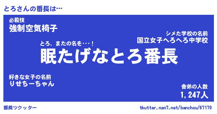 | 2回繰り返すあだ名 | 『とろとろ』『ととろろ』『いじいじ』 |