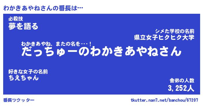 | ヒーロー風カッコイイあだ名 | 『スーパーワカキアヤネ』『銀牙騎士ワカ』 |