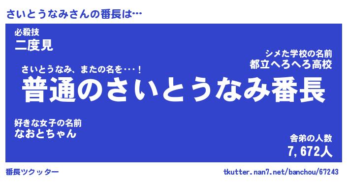 | ヒーロー風カッコイイあだ名 | 『スーパーサイトウナミ』『炎刃騎士サイ』 |