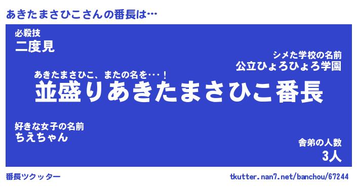 | 肩書あだ名 | 『あきたまさひこ御曹司』 |