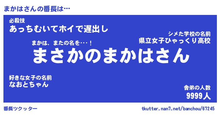 | ヘコむあだ名 | 『まかふぇ~』『酢こんぶ』『まかを』 |