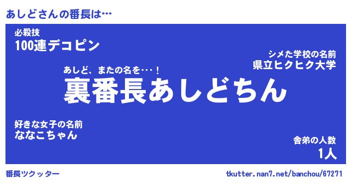 | 意味不明あだ名 | 『ペロリンあしど』『あしどフォーエバー』 |