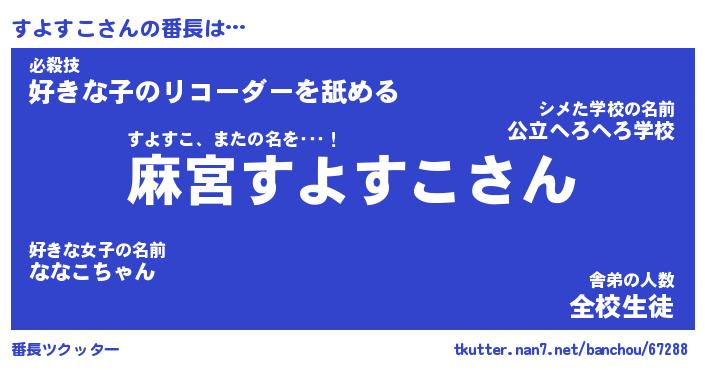 | ヘコむあだ名 | 『すよにゅー』『酢こんぶ』 |