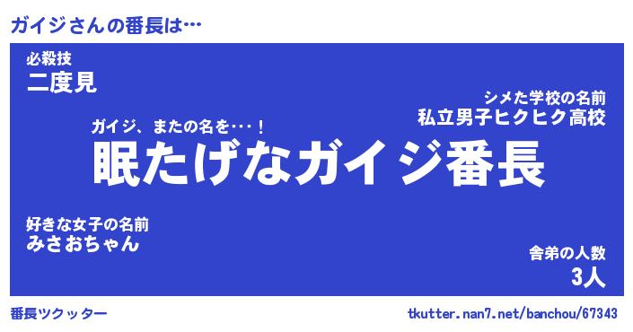| ポケモン風あだ名 | 『ガイチュウ』『ガイジダネ』 |