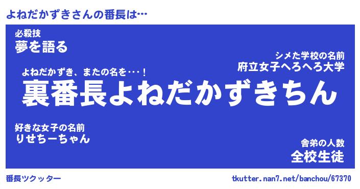 | 肩書あだ名 | 『よねだかずき御曹司』 |
