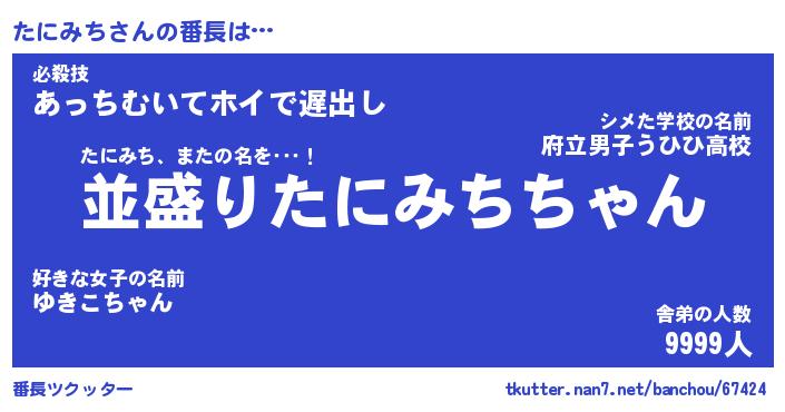 | ファンタジー風あだ名 | 『タニフェル』『エターナルタニミチー』 |