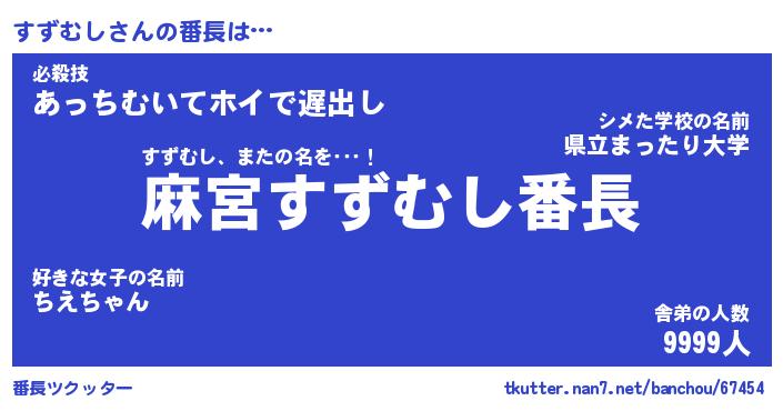 | ヒーロー風カッコイイあだ名 | 『スーパースズムシ』『天弓騎士スズ』 |