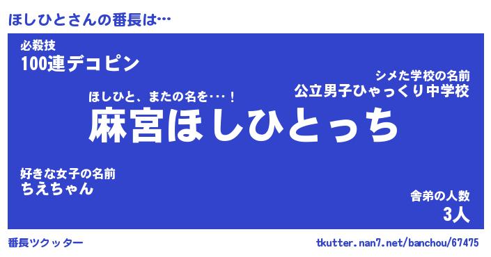 | ヘコむあだ名 | 『ほしもー』『つくし』『ほし太郎』 |