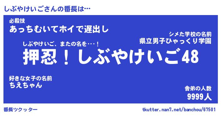 | 肩書あだ名 | 『しぶやけいご店長』『しぶやけいご教頭』 |