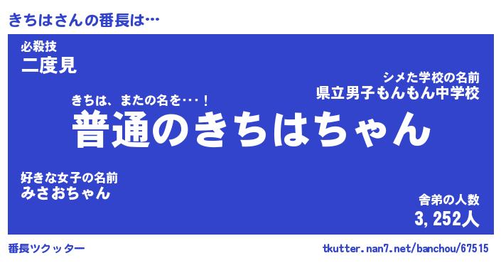 | 2回繰り返すあだ名 | 『きちきち』『ききちち』『いじいじ』 |
