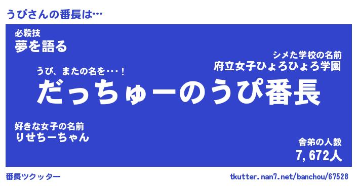 | ヒーロー風カッコイイあだ名 | 『スーパーウピ』『ウルトラうぴマン』 |