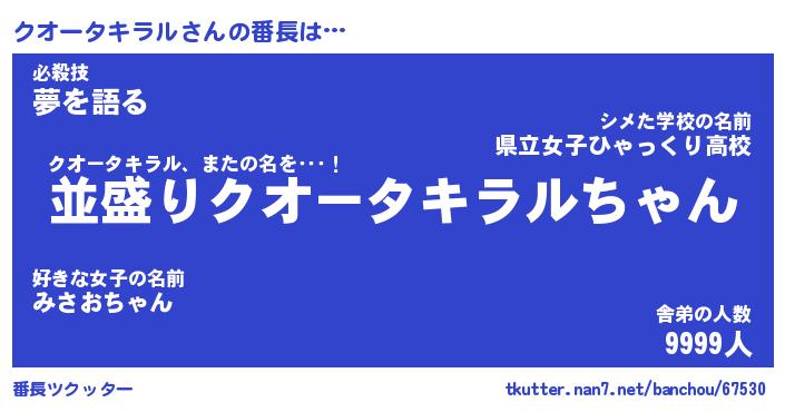 | ヒーロー風カッコイイあだ名 | 『スーパークオータキラル』 |