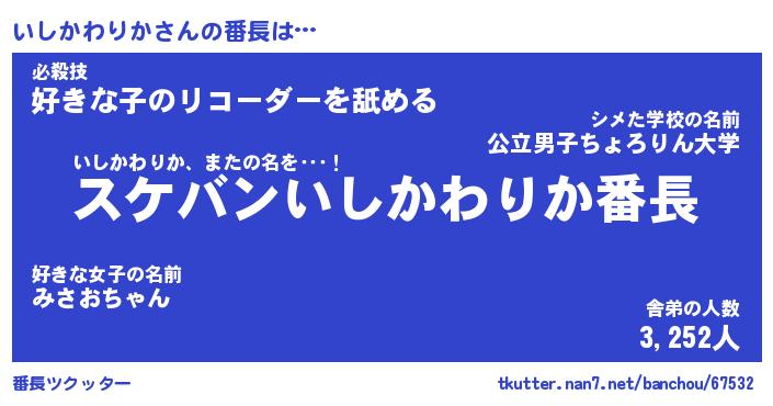 | ヘコむあだ名 | 『いしふぇ~』『酢こんぶ』『いしを』 |