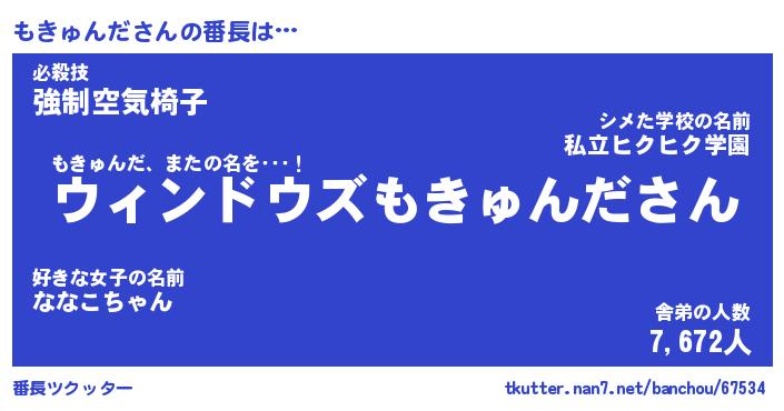 | ヘコむあだ名 | 『もきもー』『つくし』『もきお』 |