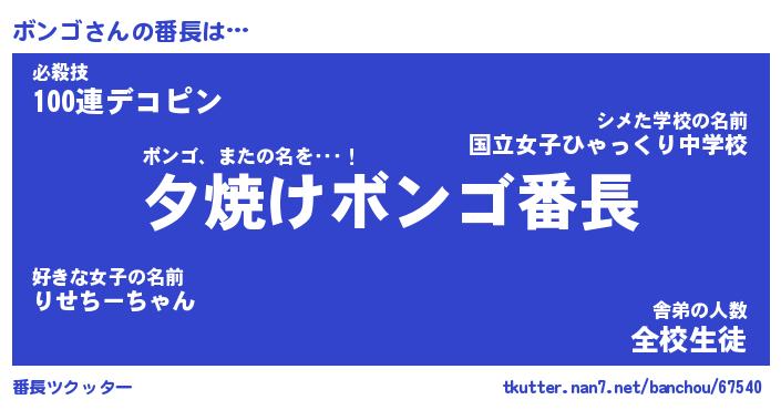 | ファンタジー風あだ名 | 『ボンフェル』『エターナルボンゴー』 |