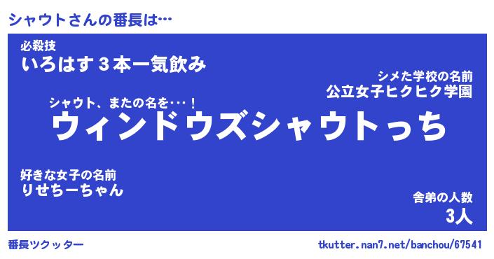 | 肩書あだ名 | 『シャウト店長』『シャウト国家主席』 |