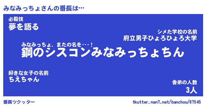 | 伝説のあだ名 | 『封印されしスナイパーみなみっちょ』 |