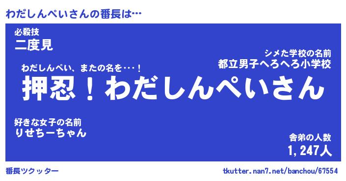 | 肩書あだ名 | 『わだしんぺい御曹司』 |