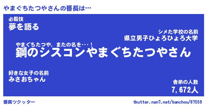 | 肩書あだ名 | 『やまぐちたつや御曹司』 |