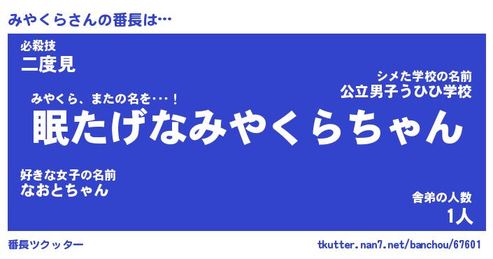 | ピコ太郎風あだ名 | 『ミコ六郎』『ピミ二郎』『ミヤ次郎』 |